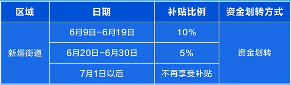 惠济区新城街道办事处、惠济区长兴路办事处已经将15%补贴的日期顺延至7月31日,将10%补贴的日期延长至8月30日。